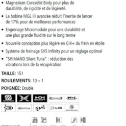 Metanium MGL B 151 Moulinet Casting Manivelle A Gauche Shimano