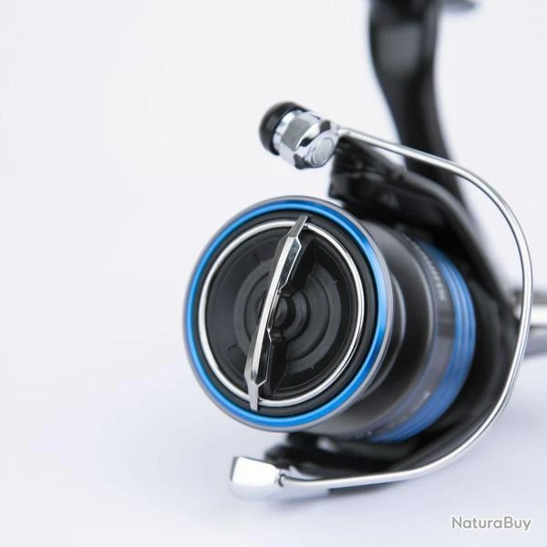 - Bobine en aluminium forgé à froid, de type AR-C , c’est à dire une forme particulière de la bobine, avec des lèvres en V, qui limite les frottements du fil au lancer.