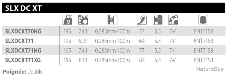 CaractĂ©ristiques du moulinet casting Shimano manivelle Ă droite pour pĂȘcheur gaucher SLX XT DC 71 HG