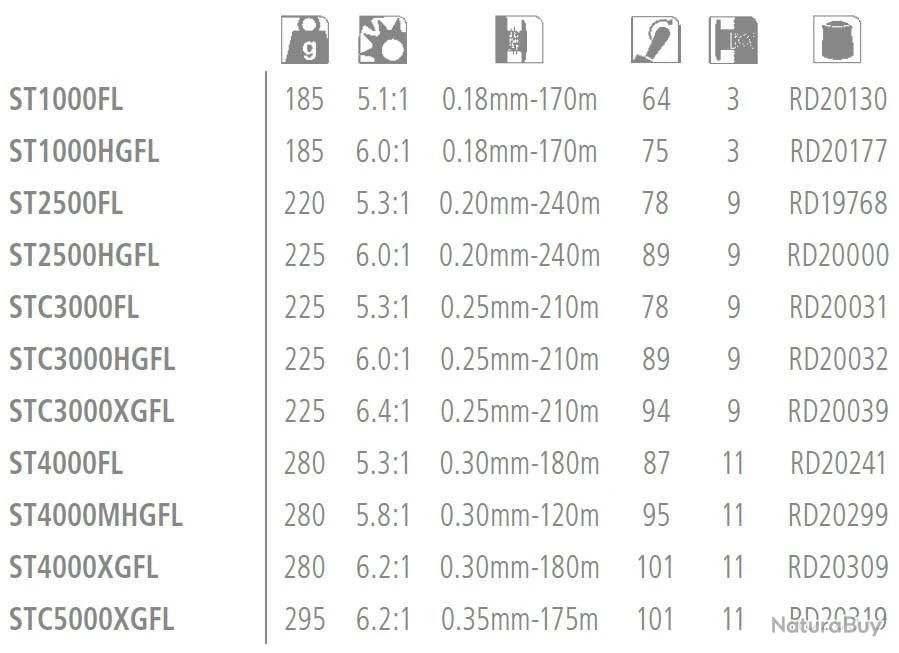 Caractéristiques du moulinet spinning Shimano Stradic 2500 HG FL :